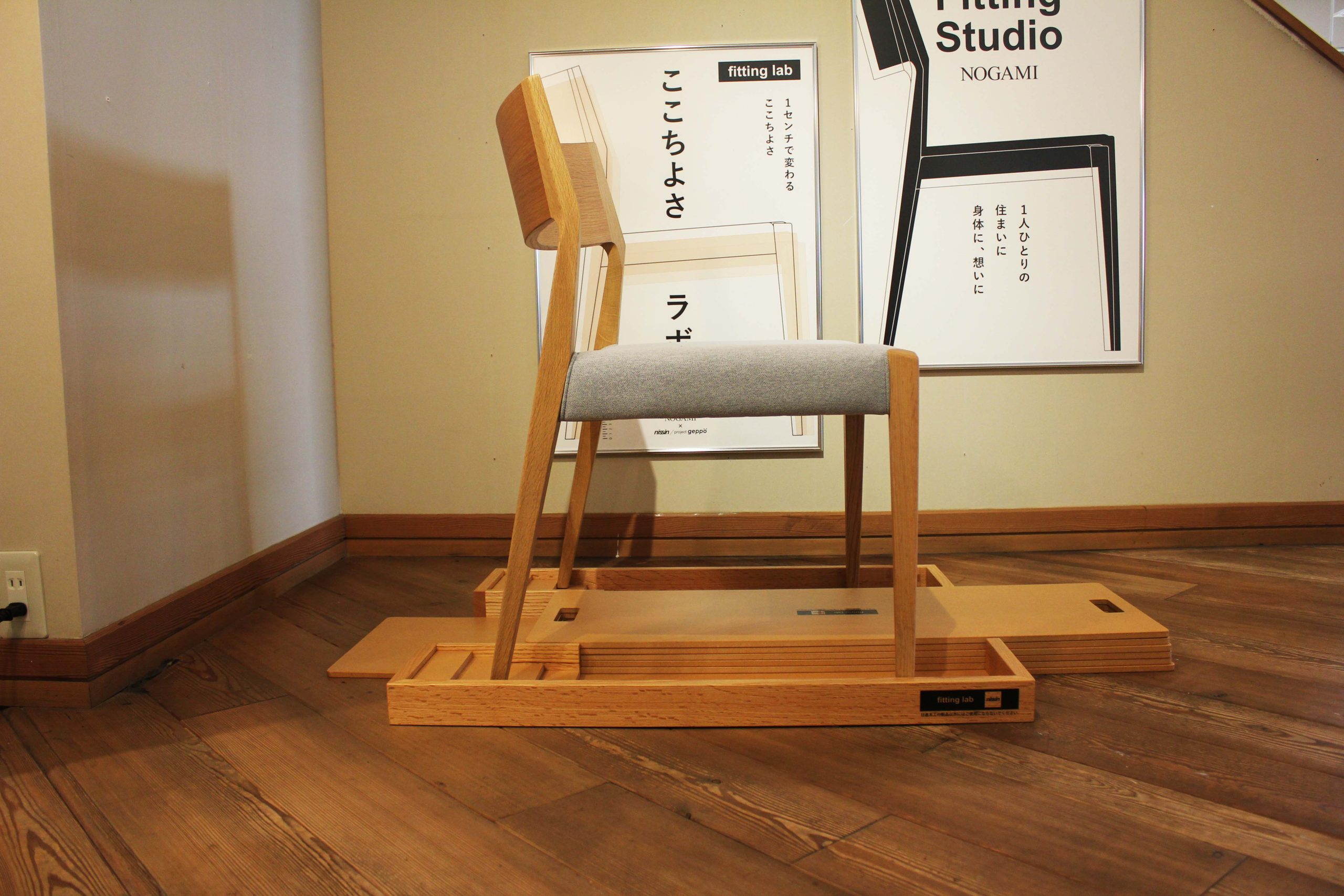 チェアフィッティングは今回のイベントでご協力頂いている日進木工のチェアであれば多くのチェアで行うことができます。